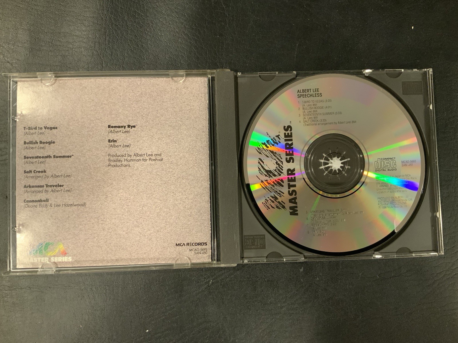 The ALBERT LEE Speechless CD is a rare find from 1986, released under MCA Records in the Master Series. This rock album is in very good condition, graded as “Very Good (VG)” for the CD, jewel case, and inlay. The promo edition features the iconic artist's music in a standard jewel case, making it a valuable addition for any music collector or fan of Albert Lee's work.