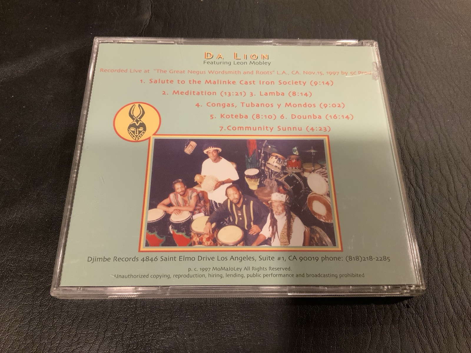 The product is a rare CD titled “Da Lion featuring Leon Mobley – Live at the Great Negus, LA, CA 11-15-97” released in 1997. It is a live edition album by Da Lion featuring musician Leon Mobley, produced by Djimbe Records. The CD comes in a standard jewel case with very good overall condition, including the case and inlay. This CD offers a unique opportunity to experience a live performance by these artists from a specific date and location.