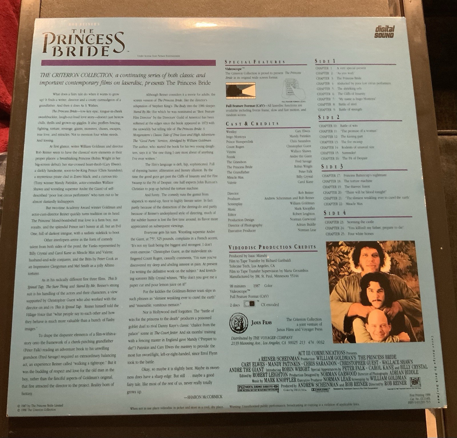![PRINCESS BRIDE (1987) LASERDISC [CC1140L] Criterion Collection #40 CAV VG+ RARE - Image 4](https://www.boddhidharmacollectibles.com/wp-content/uploads/2025/05/10-787.jpg)