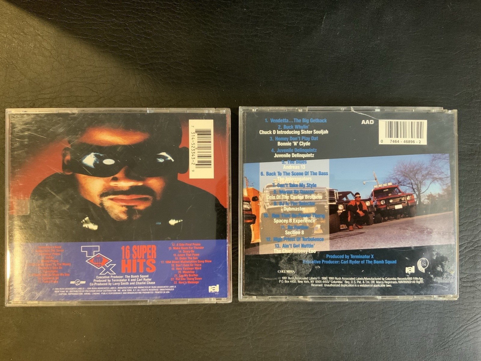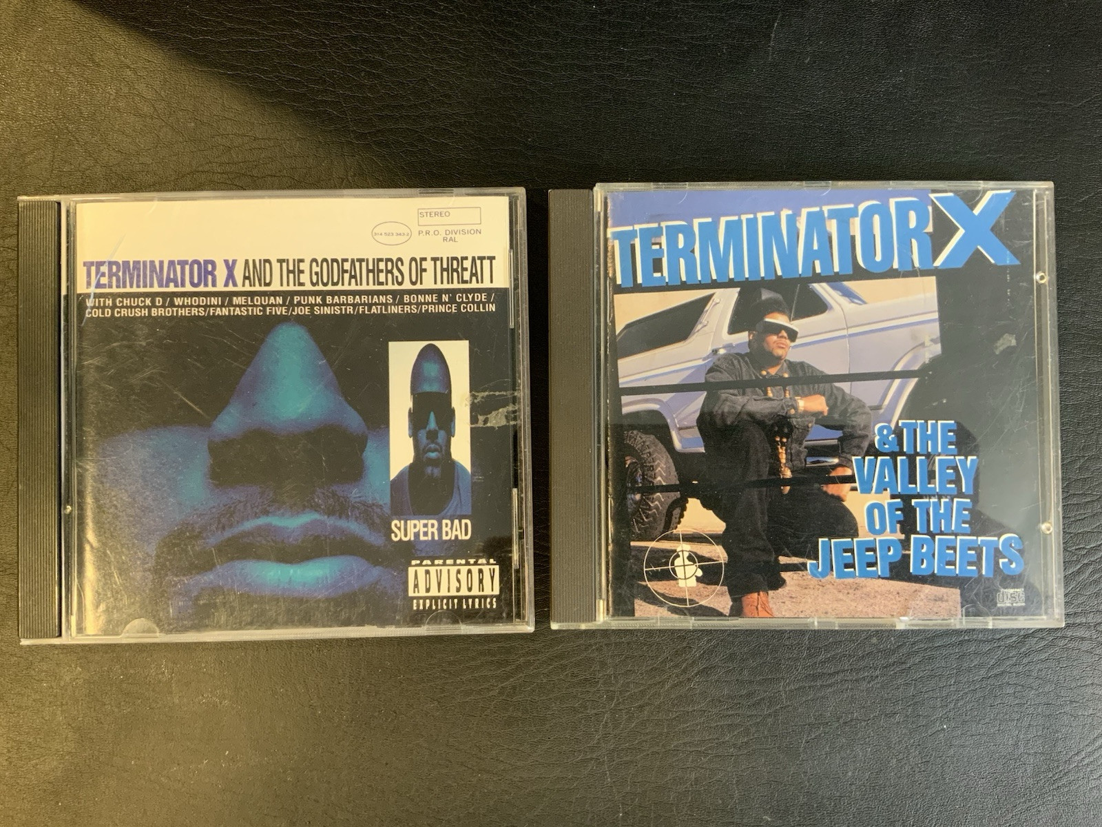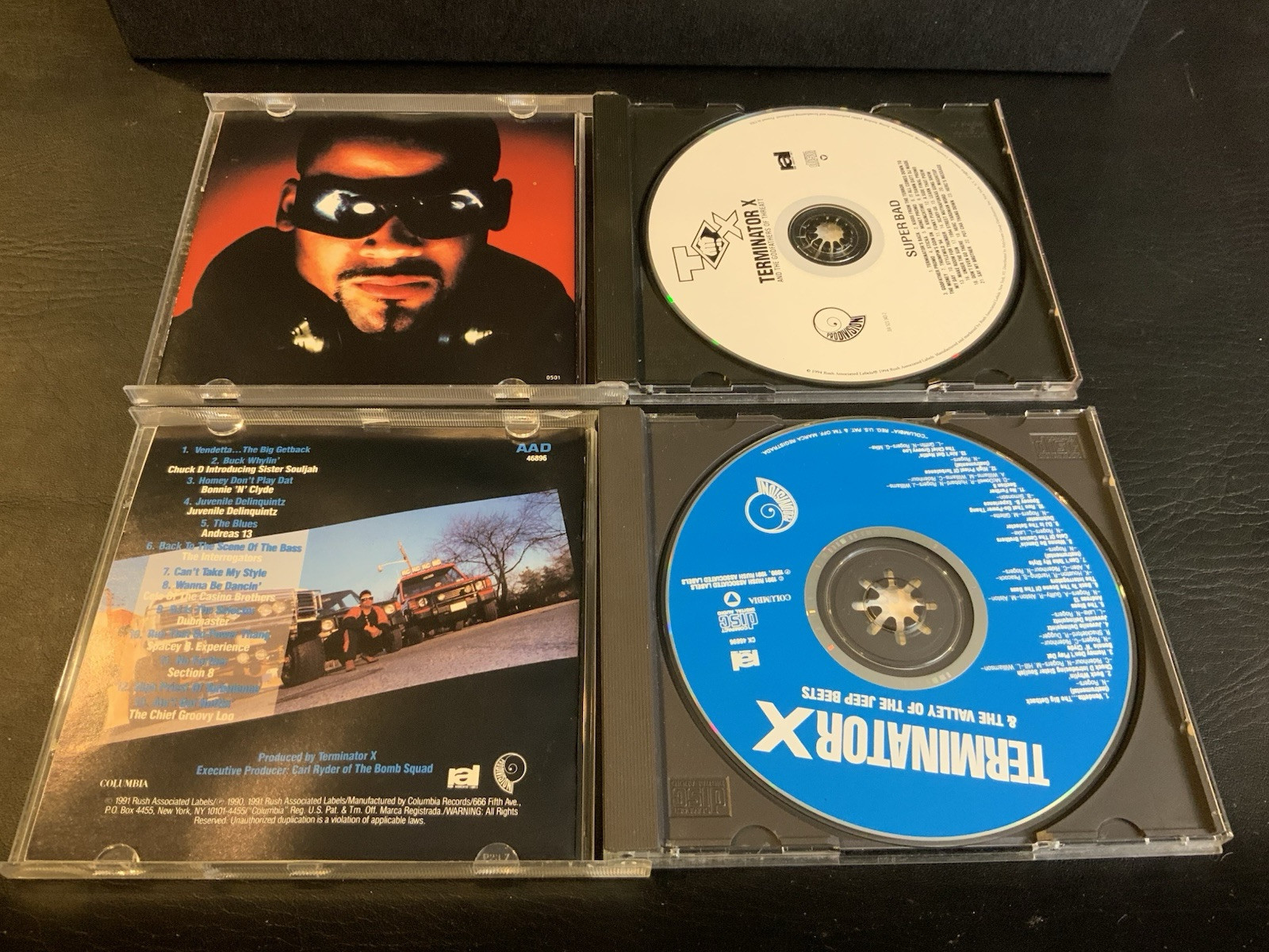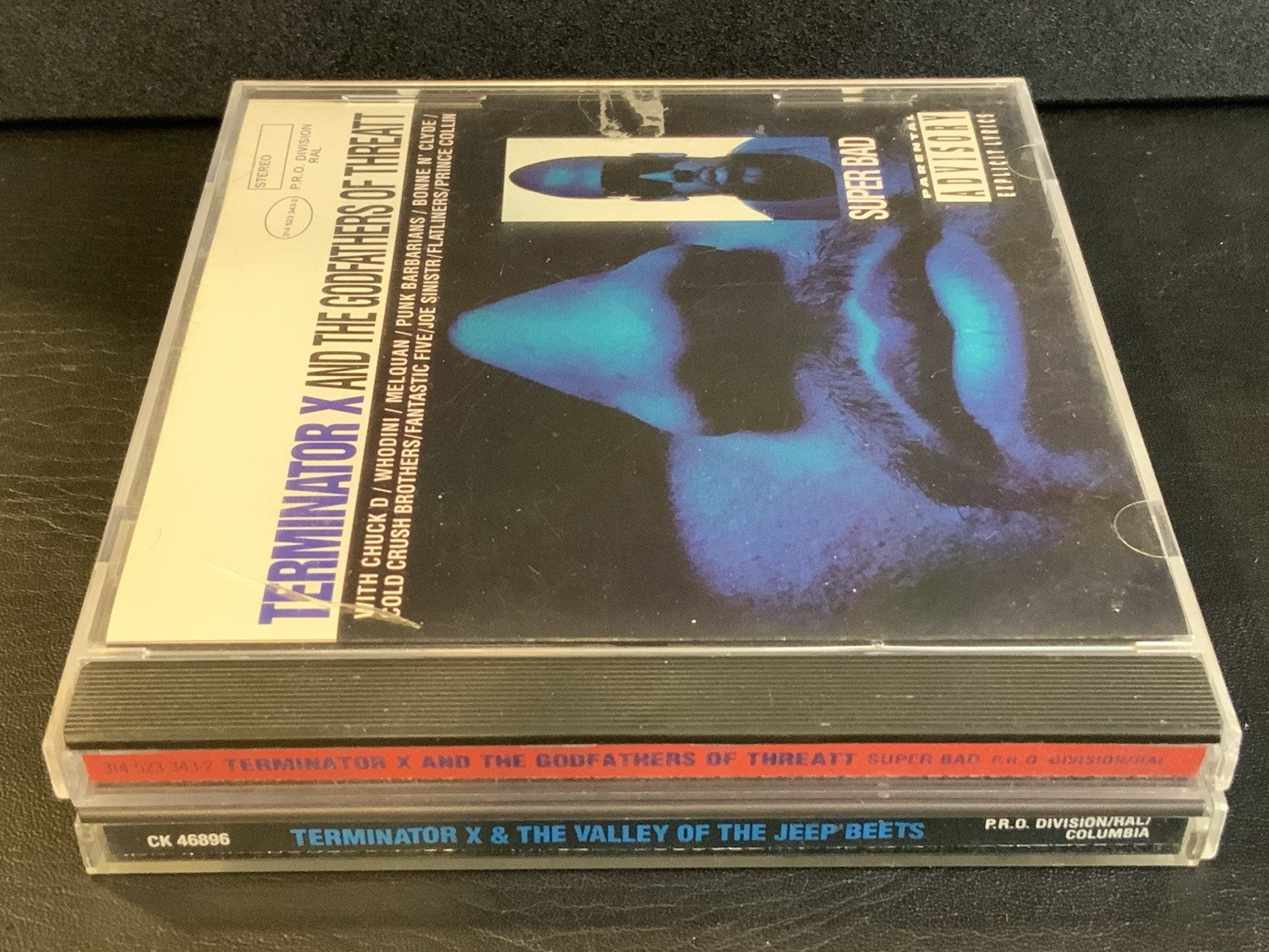 The product is a 2 CD lot featuring Terminator X's albums “Godfathers of Threat” and “Valley of Jeep Beets” from 1991. Produced by Godfather, these albums fall under the rap genre and were released under the record label Rush Associated Labels. The CDs come in a standard jewel case with very good condition for both the case and the inlay. Terminator X, known for his work with Public Enemy, offers a collection of music that showcases his skills as an artist in the hip-hop scene during that era.